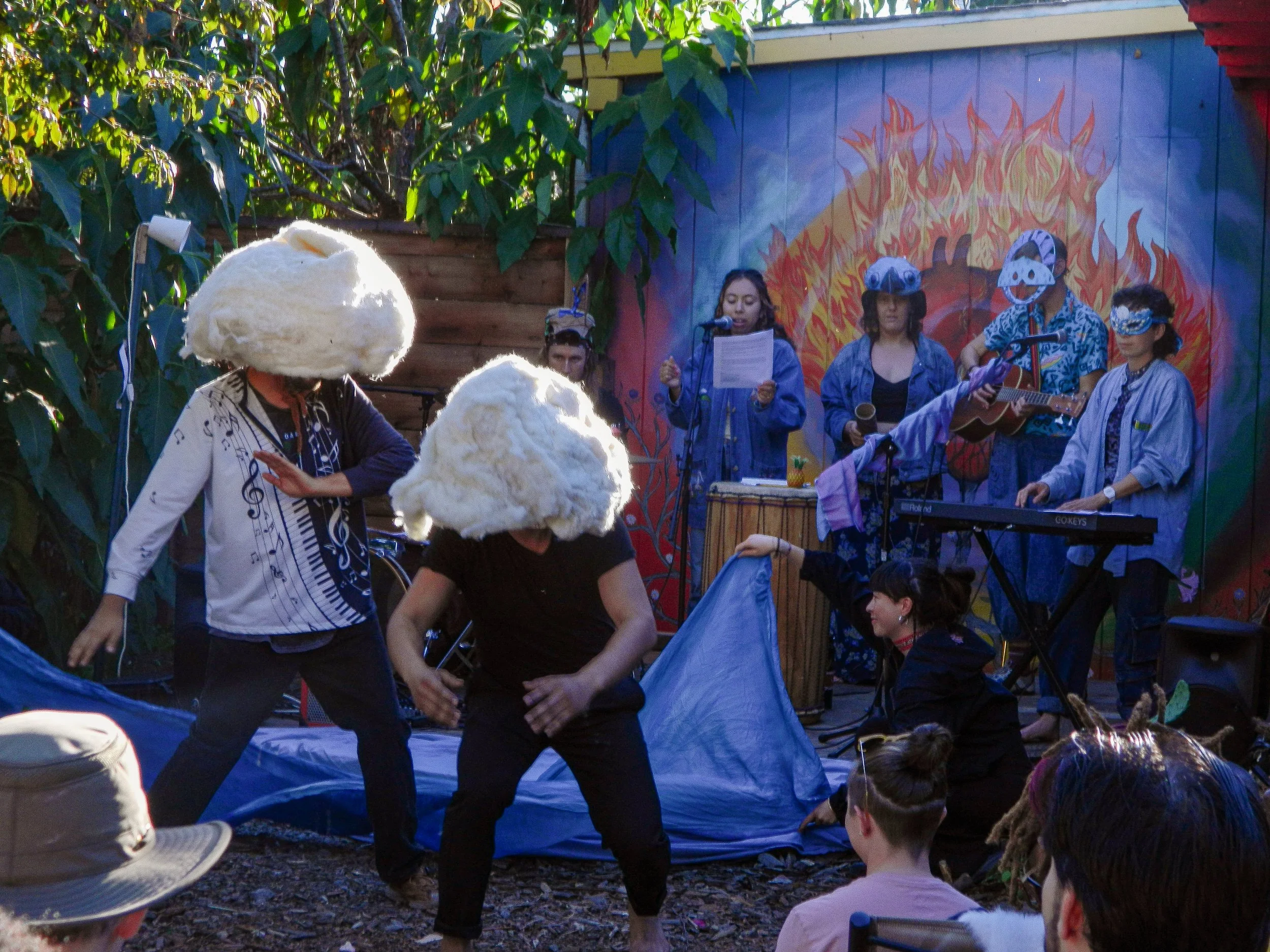 They’ve toured with Agile Rascal Bicycle Theater, supported youth to devise plays with the SF Mime Troupe, and alchemized story into song with various communities. As a healing practitioner with Sacred Roots Collective, she incorporates medicinal play, theater of the oppressed and somatic awareness into her popular education facilitation. While they’ve trained with Dell’Arte, Double Edge, and the Church of Clown, their greatest teachers in imaginative dramatization have been children.