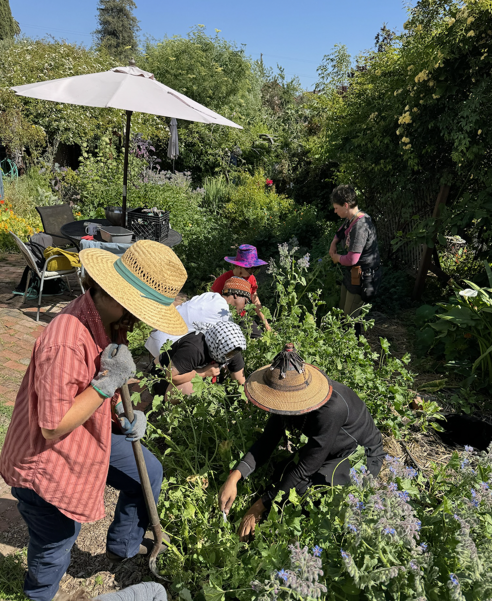 Transforming Invasives // Welcoming Newcomers (TIWN) is a laboratory for experimentation with “invasive” / “opportunistic” / “newcomer plants”. We meet regularly at land projects in the East Bay and collaborate with their stewards to pick a ‘weed’ to focus on researching and meditatively removing. We approach each newcomer plant with curiosity about their migration stories, cultural uses, energetic messages, edible and medicinal possibilities, and their role in the changing landscape.